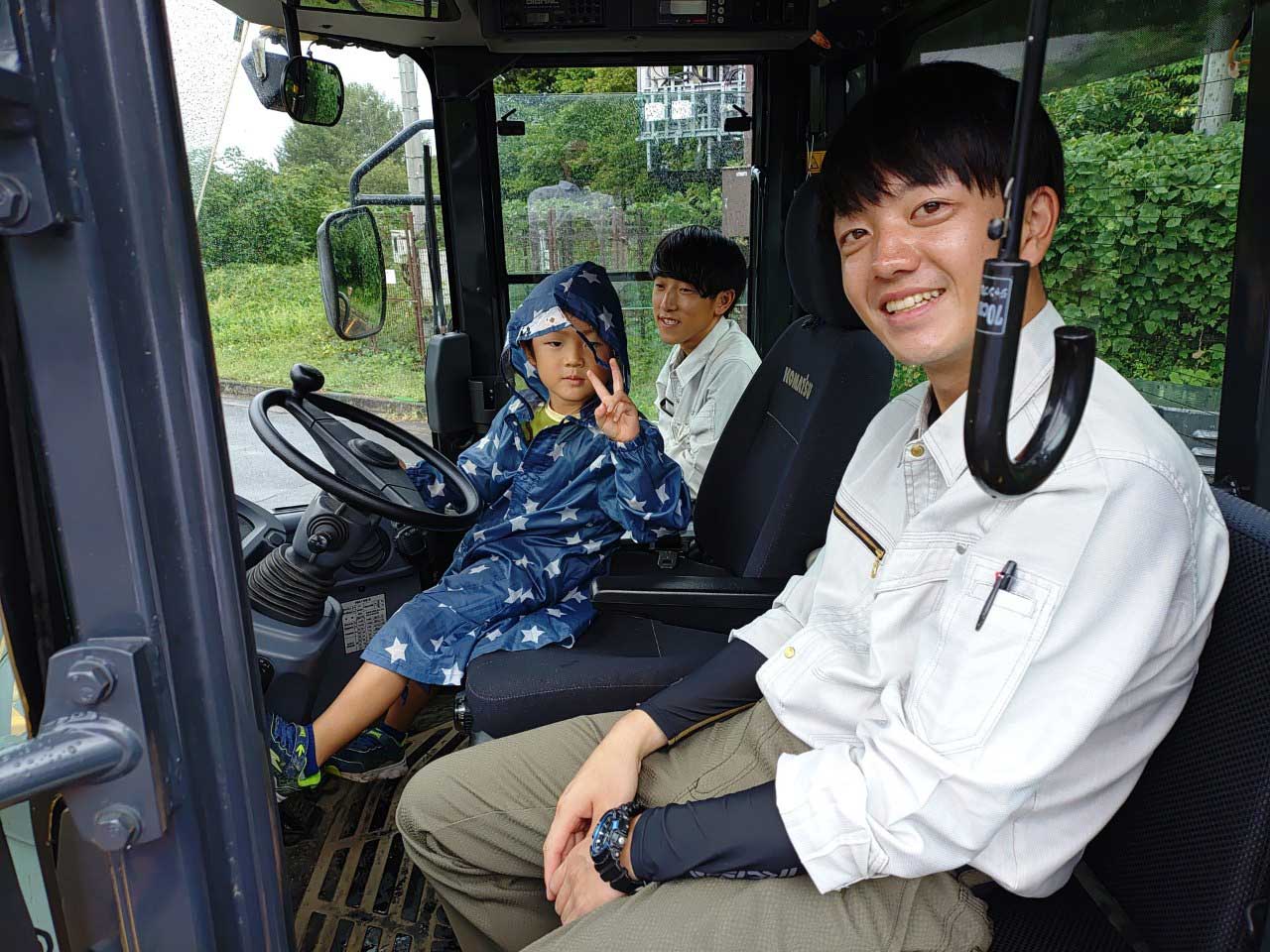 当社はイベントの一つとして 「重機乗車体験」 を実施し、来場された方々に建設機械の魅力を体感していただきました。
